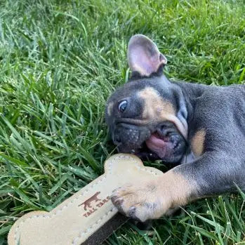 • 6" leather dog toy