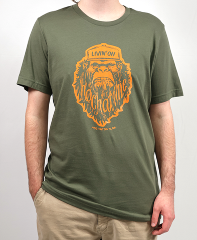 Show your Hochatime spirit with Hochatown's favorite hometown character in our "Livin' on Hochatime" Bigfoot tees.