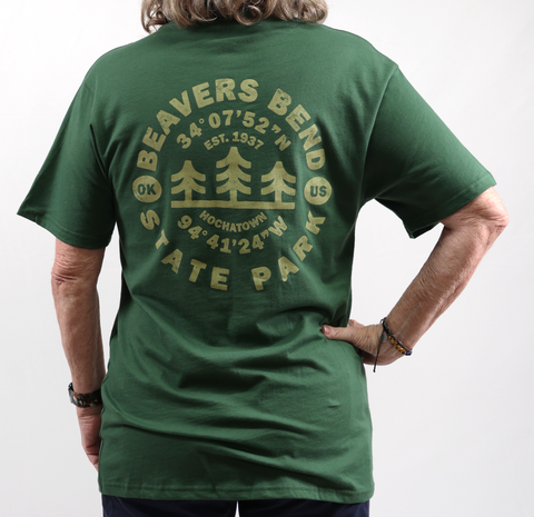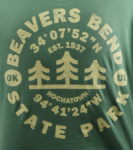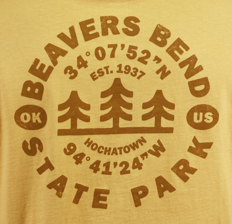 Our Beavers Bend State Park coordinates tee highlights the first "tourist" attraction in the Hochatown area by marking its spot on the map!